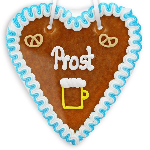 Es handelt sich um das Lebkuchenherz mit dem Schriftzug " Prost" in der Größe ca. 18cm x 18cm.